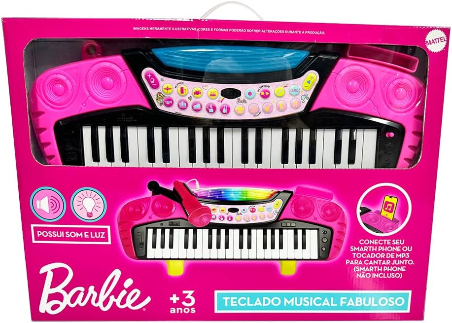 O Barbie Teclado Musical Com Microfone e Banquinho da Fun é um produto desenvolvido especialmente para proporcionar uma experiência real de música para as crianças. Com seu design inspirado na Barbie, esse teclado musical é perfeito para os pequenos se divertirem e soltarem a imaginação enquanto exploram diferentes sons. Diferenciais do Produto: Design Encantador: Com sua temática Barbie, o teclado musical proporciona um visual encantador, despertando a imaginação das crianças e fazendo com que se sintam como verdadeiras estrelas da música. Microfone Incluso: O Barbie Teclado Musical Com Microfone e Banquinho vem acompanhado de um microfone, permitindo que as crianças soltem a voz enquanto tocam suas músicas favoritas. Banquinho Incluso: Para proporcionar ainda mais conforto e diversão, o conjunto vem com um banquinho, permitindo que as crianças fiquem sentadas enquanto tocam e cantam. Teclas Sensíveis ao Toque: As 37 teclas do teclado são sensíveis ao toque, possibilitando uma experiência mais realista e auxiliando no desenvolvimento da coordenação motora. Mais sobre o Produto: Teclado Musical: Com 37 teclas, o teclado possibilita a reprodução de diferentes notas musicais, permitindo que as crianças criem suas próprias melodias e ritmos. Efeitos Sonoros: Além das notas musicais, o teclado também possui diferentes efeitos sonoros, como aplausos, risadas e sons de animais, que proporcionam ainda mais diversão e entretenimento. Função de Gravação: O Barbie Teclado Musical Com Microfone e Banquinho possui uma função de gravação, permitindo que as crianças gravem suas composições musicais e as ouçam posteriormente. Conexão MP3: O teclado conta com uma entrada para MP3, possibilitando que as crianças toquem e cantem junto com suas músicas favoritas. Dicas de Uso: Ajuste a altura do banquinho de acordo com a altura da criança, garantindo uma boa postura durante a brincadeira. Use o microfone para incentivar a criança a cantar junto com as músicas tocadas no teclado, estimulando a expressão vocal. Explore os diferentes efeitos sonoros do teclado, criando histórias e brincadeiras musicais com a criança. Utilize a função de gravação para incentivar a criança a criar suas próprias composições musicais e ouvi-las posteriormente, estimulando sua criatividade e autoexpressão. Ficha Técnica: Marca: Fun Incluso: Teclado musical, microfone e banquinho Quantidade de Teclas: 37 Mais sobre o Produto: Teclas sensíveis ao toque, efeitos sonoros, função de gravação e conexão MP3.