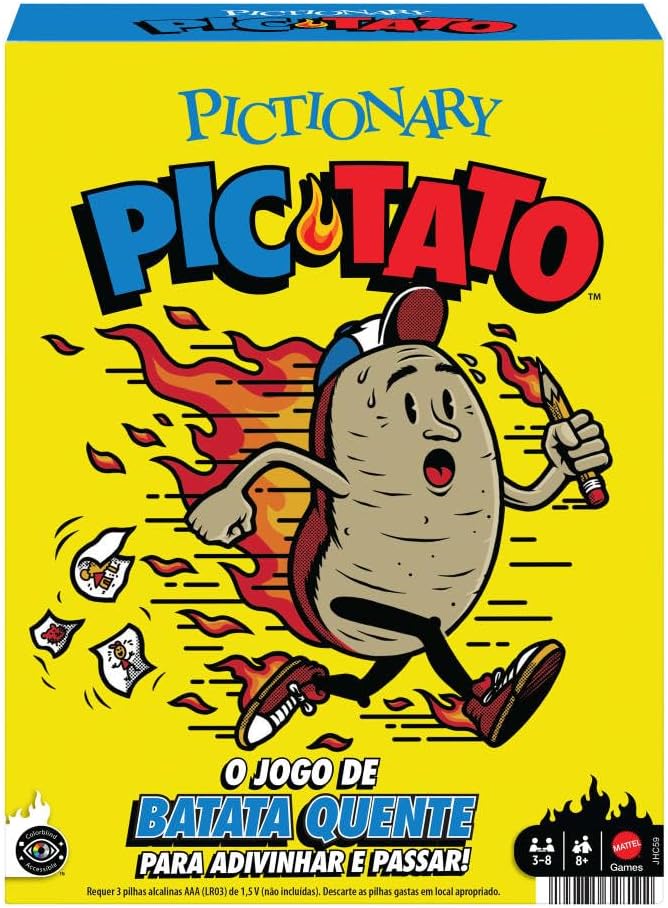 · O Pictionary Pictato é um jogo no estilo batata quente, em que os jogadores desenham, adivinham e passam rapidamente até a música parar. Quem ficar com o Pictato no final perde todos os pontos!