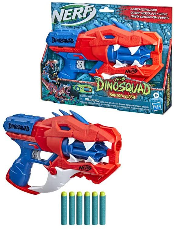 LANÇADOR NERF DINOSQUAD RAPTOR-SLASH: Muita diversão com este lançador de dardos com detalhes de dinossauro, como um velociraptor.